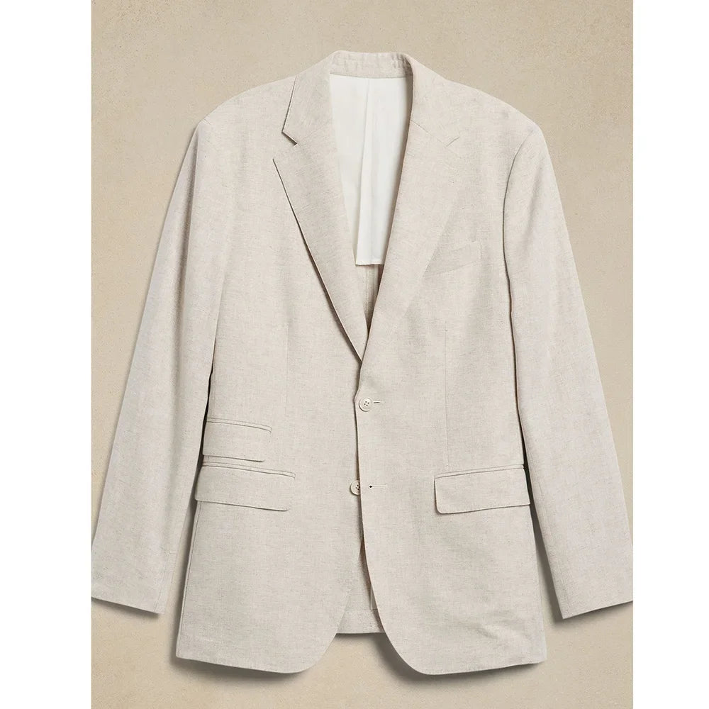 BeClassic™ Beige Linen Suit – Elegant Two-Piece Attire for Weddings & Business.