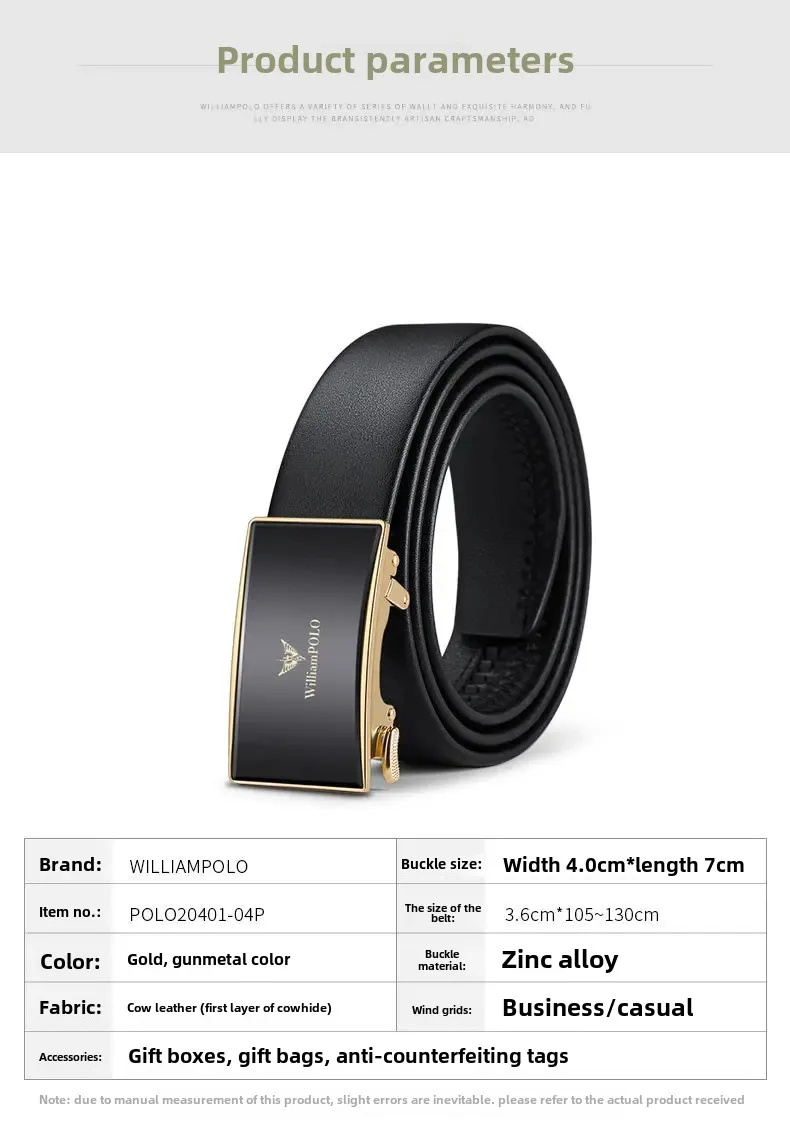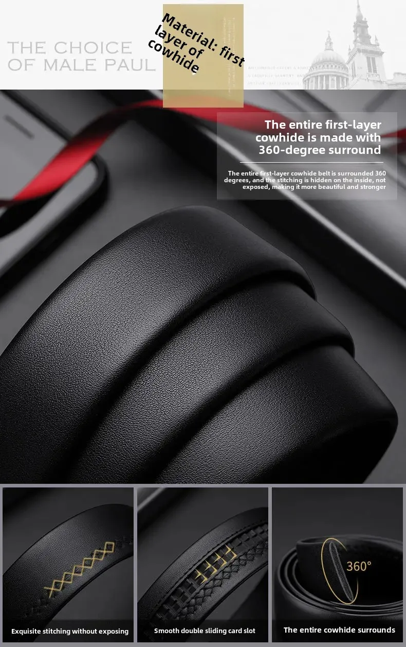 • Genuine Leather Material : Crafted from top layer cowhide, this belt offers durability and a luxurious feel, perfect for business wear.