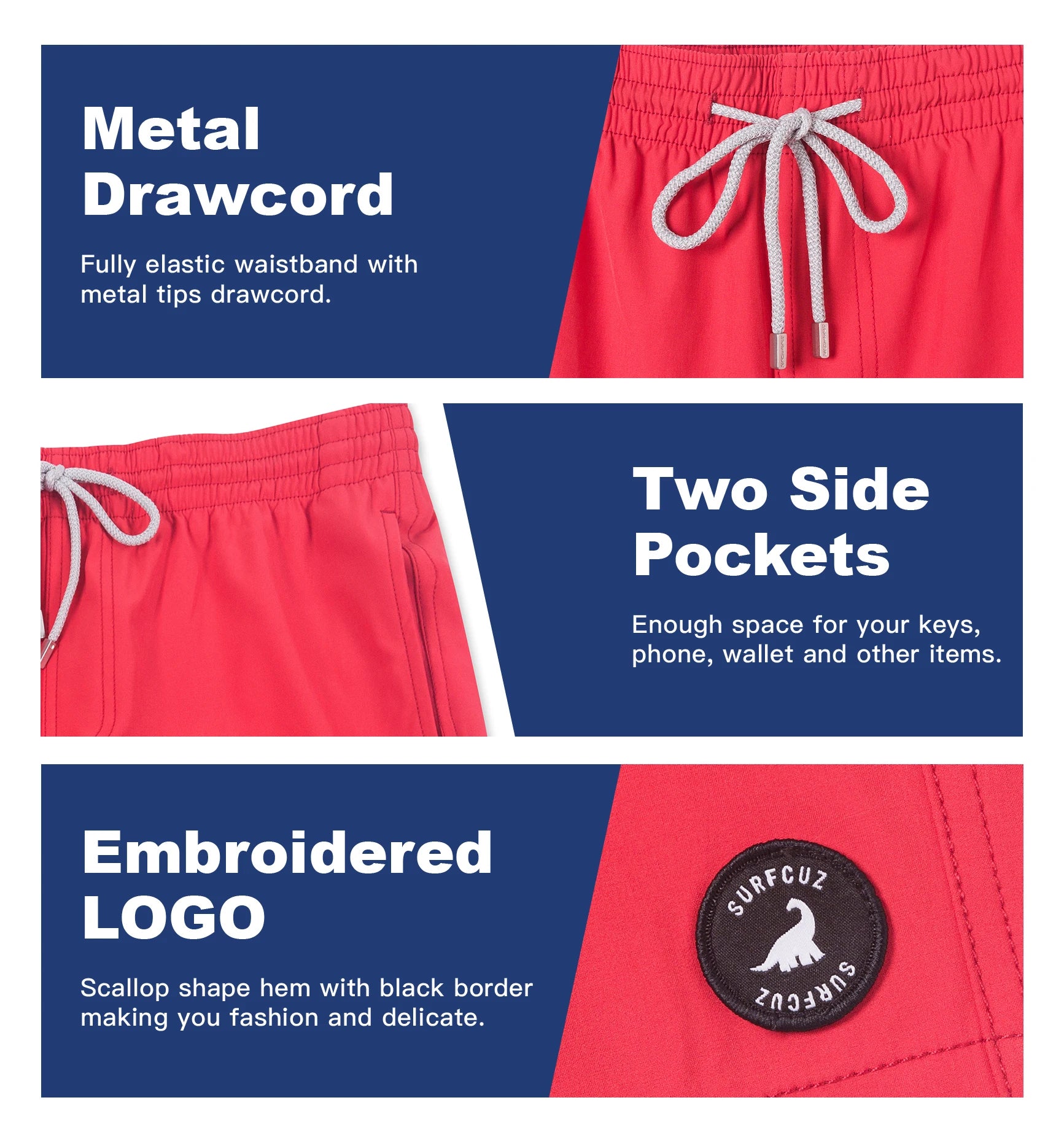 3.High quality fashion board shorts : Elastic waistband with drawstring, drawstring can be used freely adjustable tightness according your waist