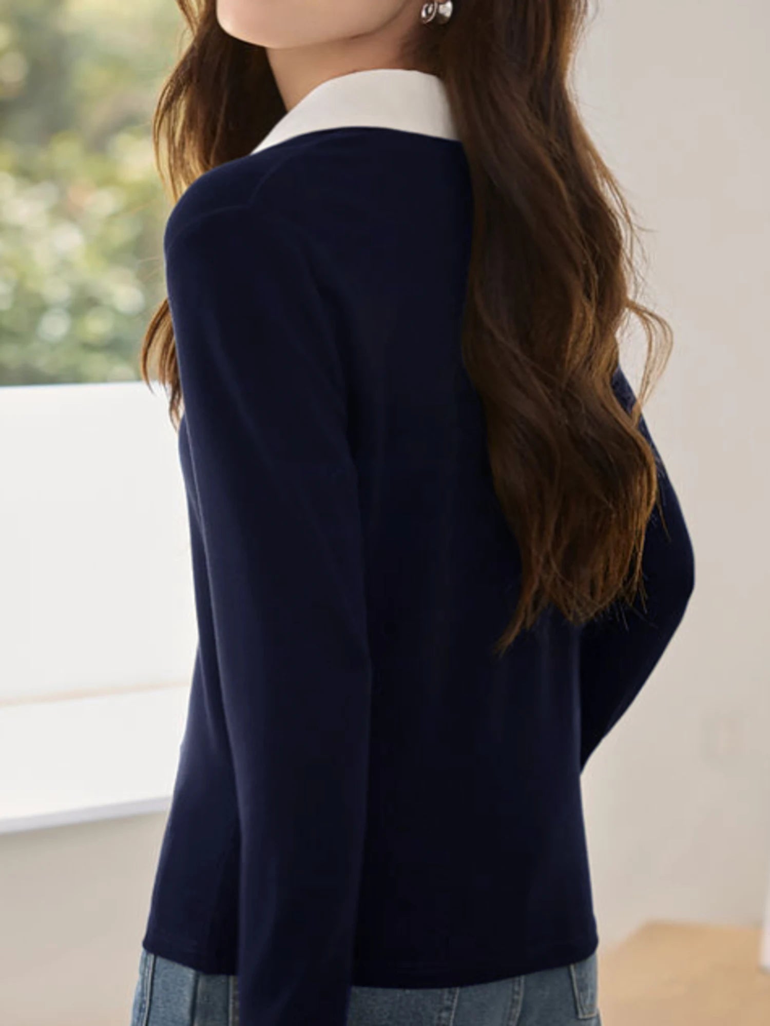 Whether paired with tailored trousers or relaxed denim, this versatile top blends casual ease with polished detail—perfect for women who value both comfort and chic sophistication in their everyday wardrobe.